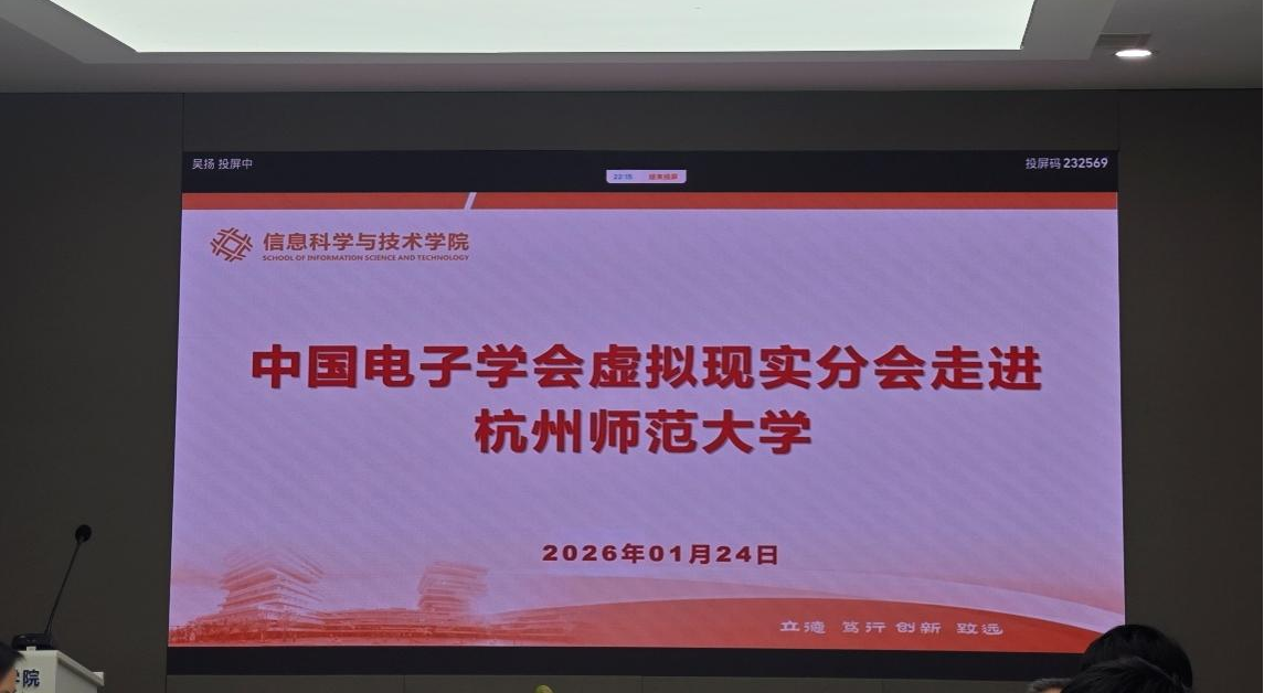 2026年1月24日下午13点30分,中国电子学会虚拟现实分会走进杭州师范大学学术交流活动在勤园12-304会议室拉开帷幕。李秀梅副院长作为本次活动的主持人。本次活动大咖云集,特邀中国科博彩公司排名 计算所王树徽研究员、中国科博彩公司排名 自动化所杨小汕研究员、杭州电子科技大学余宙教授以及青海师范大学郑钰辉教授四位学者,四位学者紧贴人工智能、多模态学习和计算机视觉的科研前沿,通过深入浅出的解析与案例分享,为十大体育博彩公司排名 师生拓宽了跨学科研究视野,注入了创新的科研动能,多位研究生积极参与。